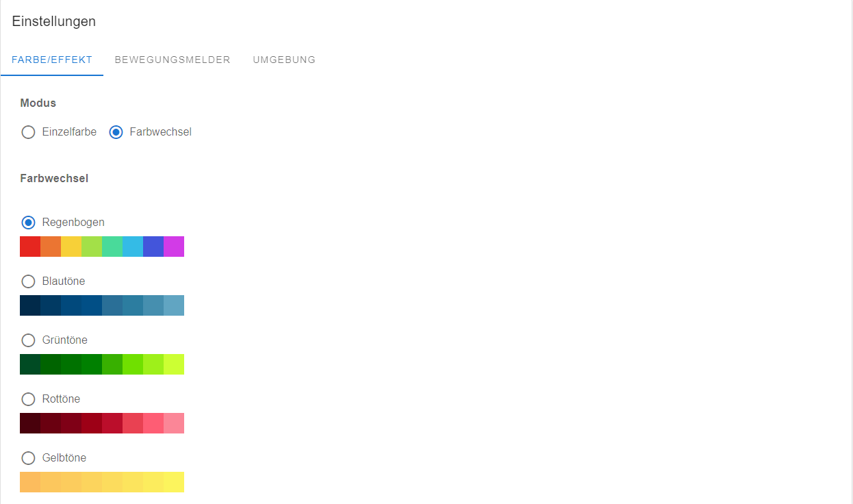 In dieser Einstellung können Sie festlegen, wie lange das Licht ab der Letzten Festgestellten Bewegung brennen soll.